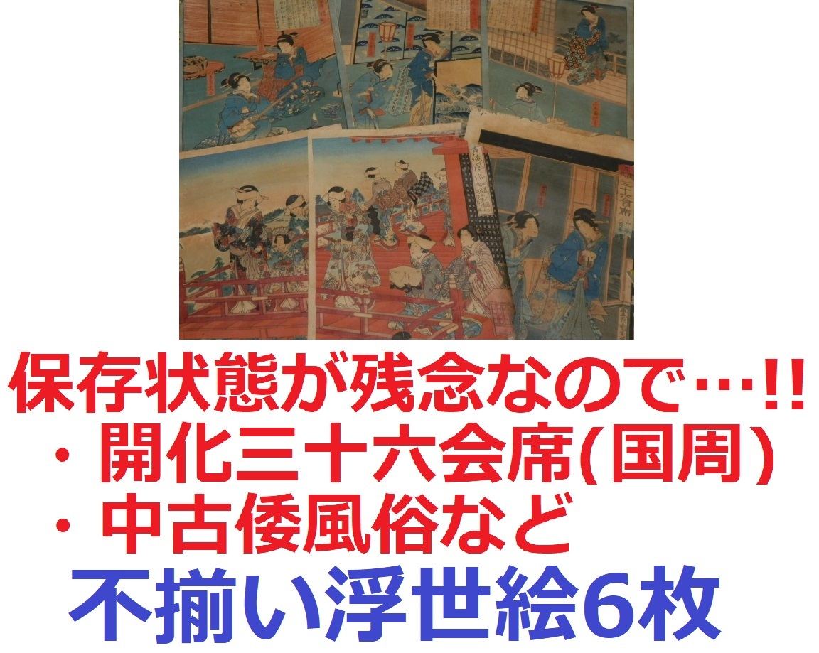 Product name: 保存状態が残念なので…!!開化三十六会席(国周)・中古倭風俗・春色三十六会席(芳幾)【不揃い浮世絵6枚】錦絵木版画美人画