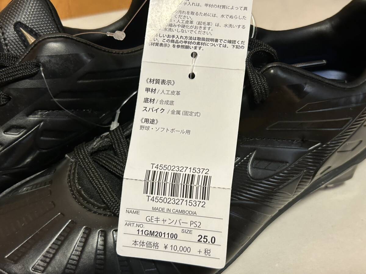 新品 未使用 ミズノ(MIZUNO)野球スパイク 黒 ミズノグローバルエリート GEキャンバーPS2 スパイク 黒 25cm 11GM201100