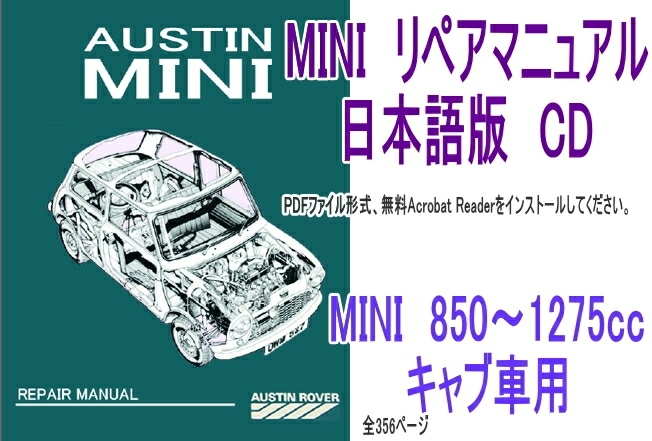 1986年発刊、ローバー旧Miniの日本正規リペアマニュアルをPDFファイルにし、CDにした物です。全356ページ