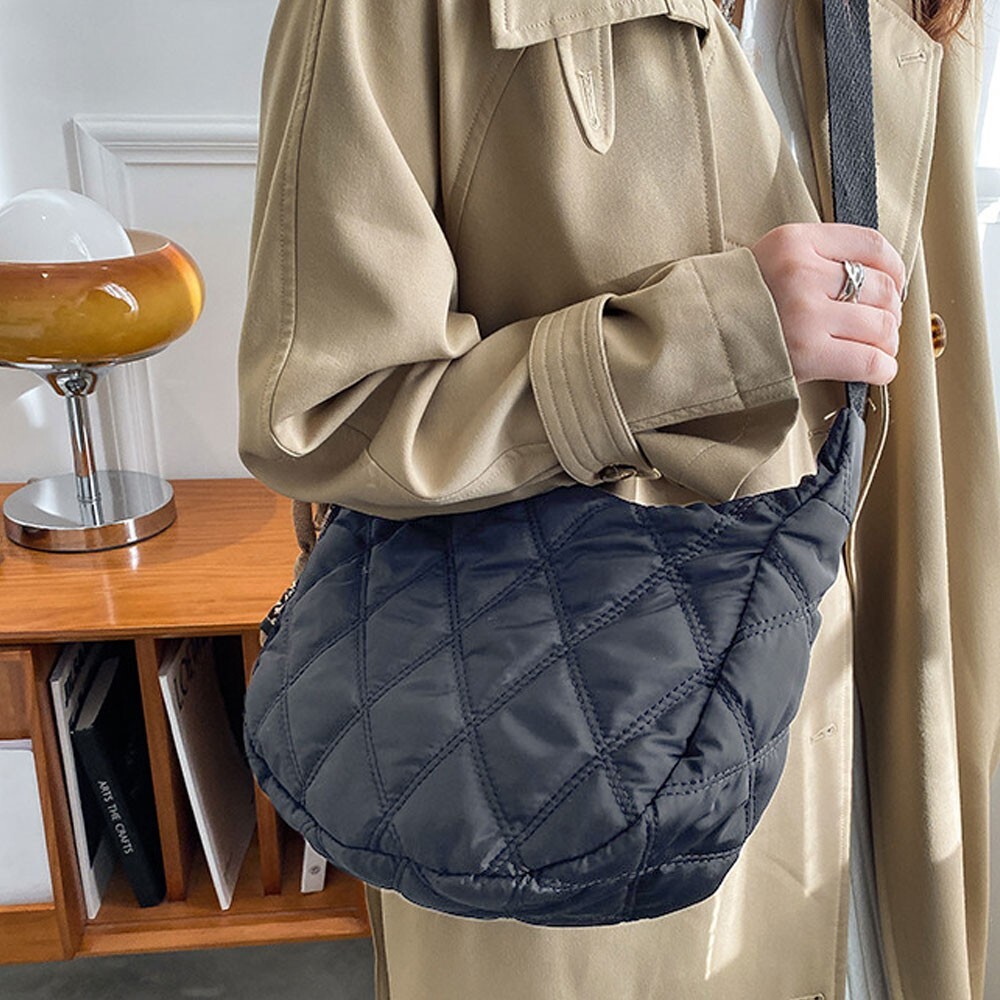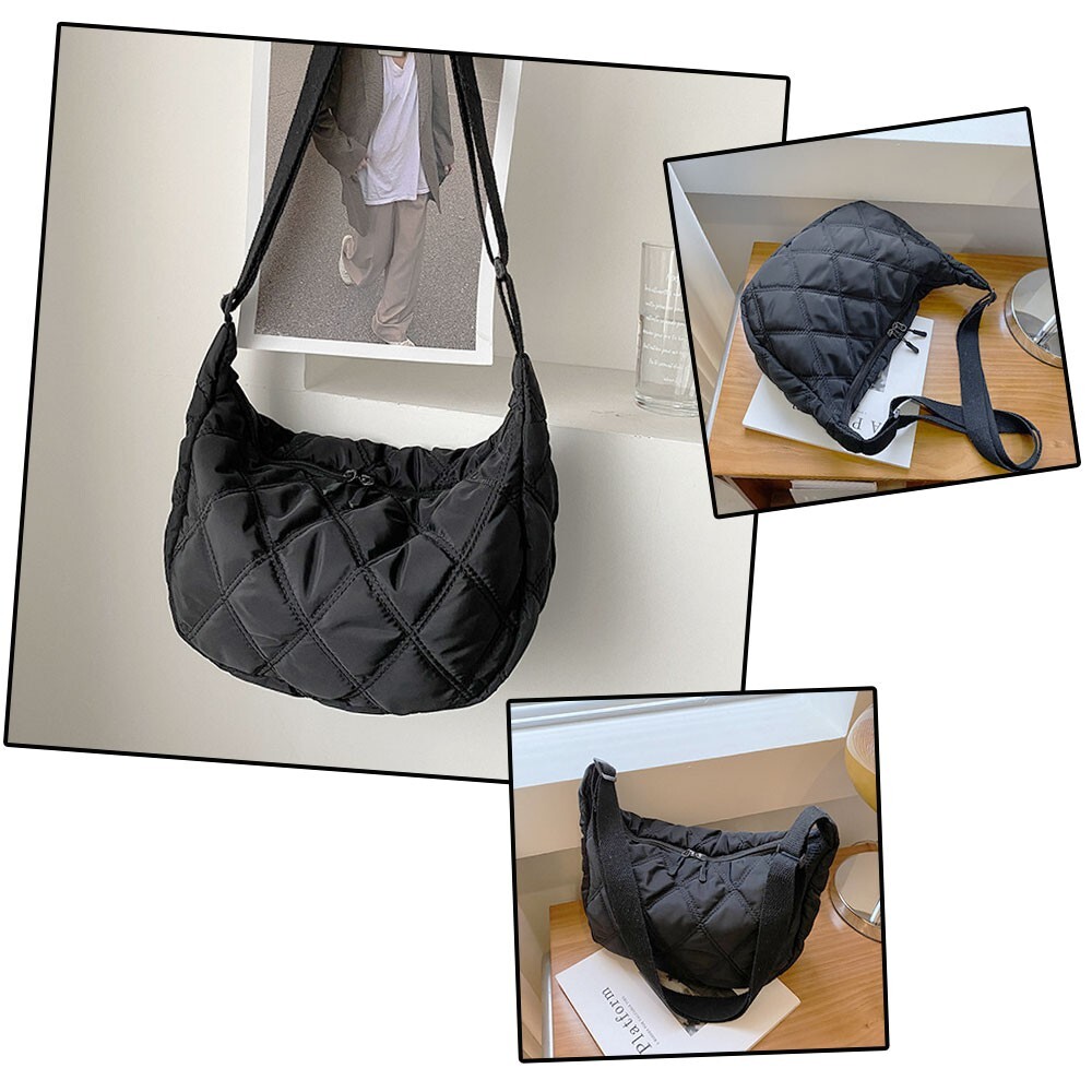 Product name: 送料無料 ショルダーバッグ キルティング ナイロン ワンショルダーバッグ 斜めがけ 斜め掛け 黒 ブラック 軽量 大容量 かばん バック (2)