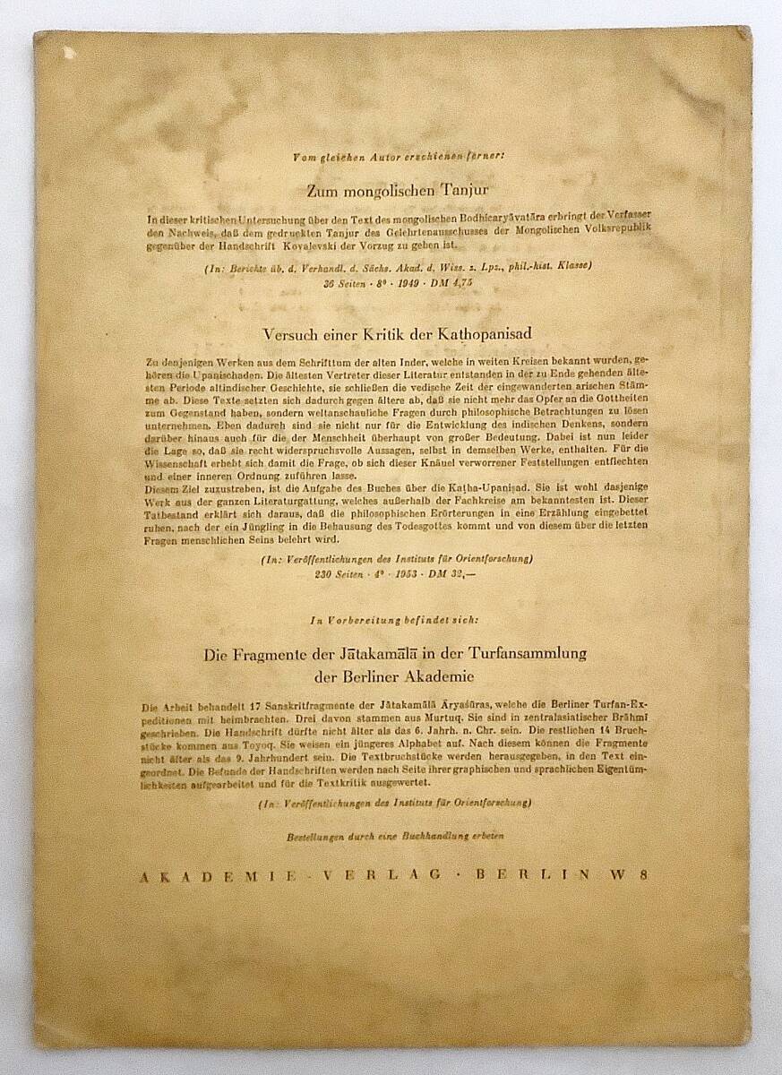【ドイツ語洋書】 ベルリン・トルファン・コレクション所収のモンゴル関係資料 『Mongolica der Berliner Turfan-Sammlung』 1a巻 *全3巻 (1巻、1a巻、2巻) の内、1a巻のみ 1955年発行 Erich Haenisch (モンゴル研究者 エーリヒ・ヘーニシュ) 編 Akademie-Verlag 刊 29 p   30 cm  ペーパーバック  ISBN:なし ●シリーズ名:Abhandlungen der Deutschen Akademie der Wissenschaften zu Berlin (ベルリン・ドイツ科学アカデミー論文), . Klasse fur Sprachen, Literatur und Kunst (言語, 文学, 芸術クラス) ; Jahrg. 1954 Nr. 2
