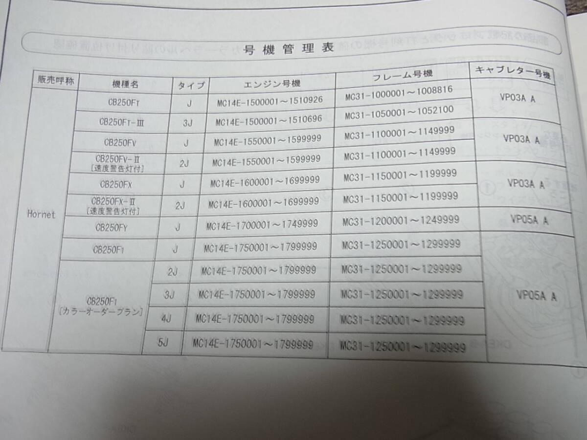 I★ ホンダ ホーネット 250 CB250F MC31-100 105 110 115 120 125 130 140 150 パーツカタログ 9版