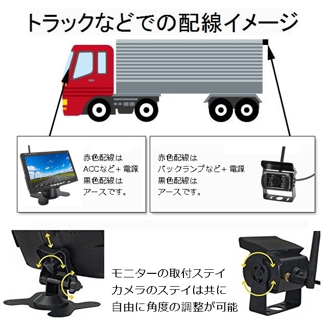 Product name: 送料無料 大型車 大型積載車 バックカメラ 日本製液晶 7インチ ワイヤレス オンダッシュ モニター バックカメラセット 24V バックモニター