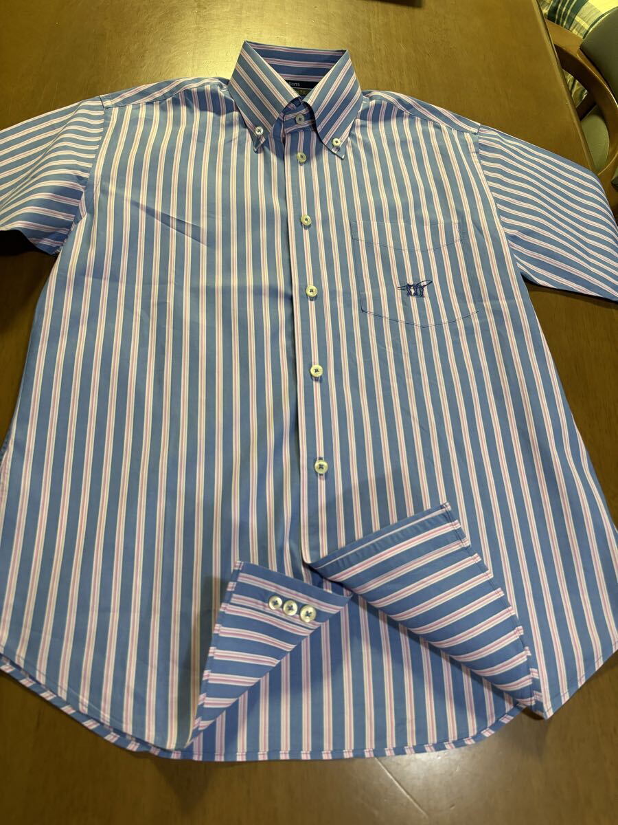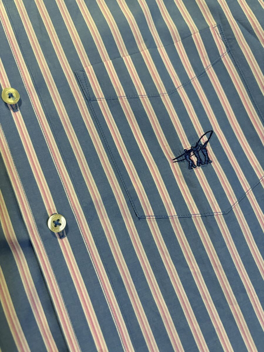 HenryCottons ㈱レナウン 綿100%ブロードクロス 白薄ピンク薄青ストライプB.D