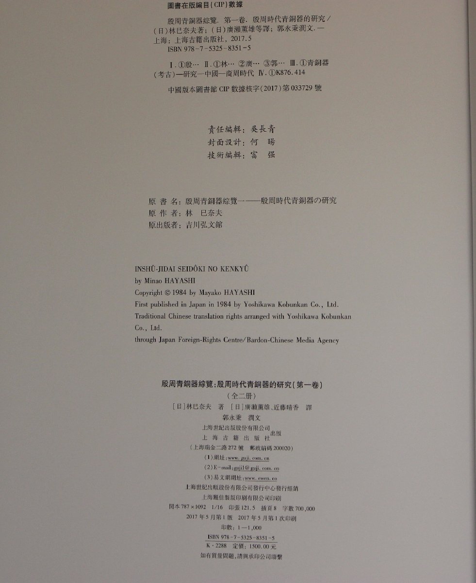 美術『殷周青銅器総覧 第1巻』林巳奈夫上海古籍出版社2017年補足:京都大学の故林巳奈夫名誉教授の殷周青銅器に関する研究の中国語翻訳版