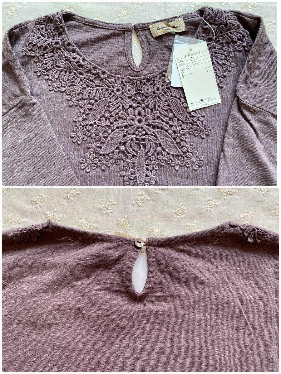 胸元に豪華に施されたケミカルレースがかわいいカットソーです。