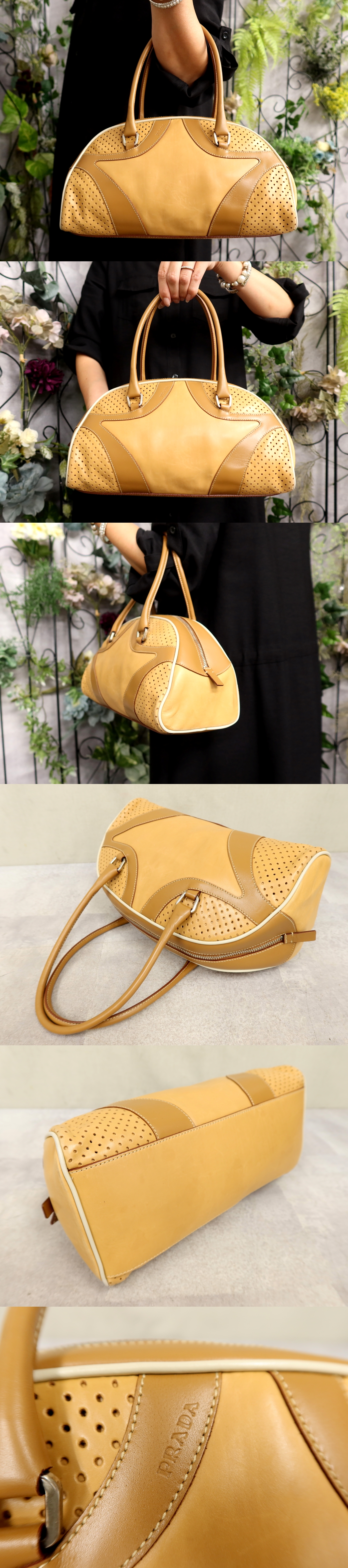Product name: ●超美品●PRADA プラダ●カーフ レザー 本革●ボーリング ハンド バッグ●ライトブラウン●シルバー金具●イタリア製●腕掛け●Js60163