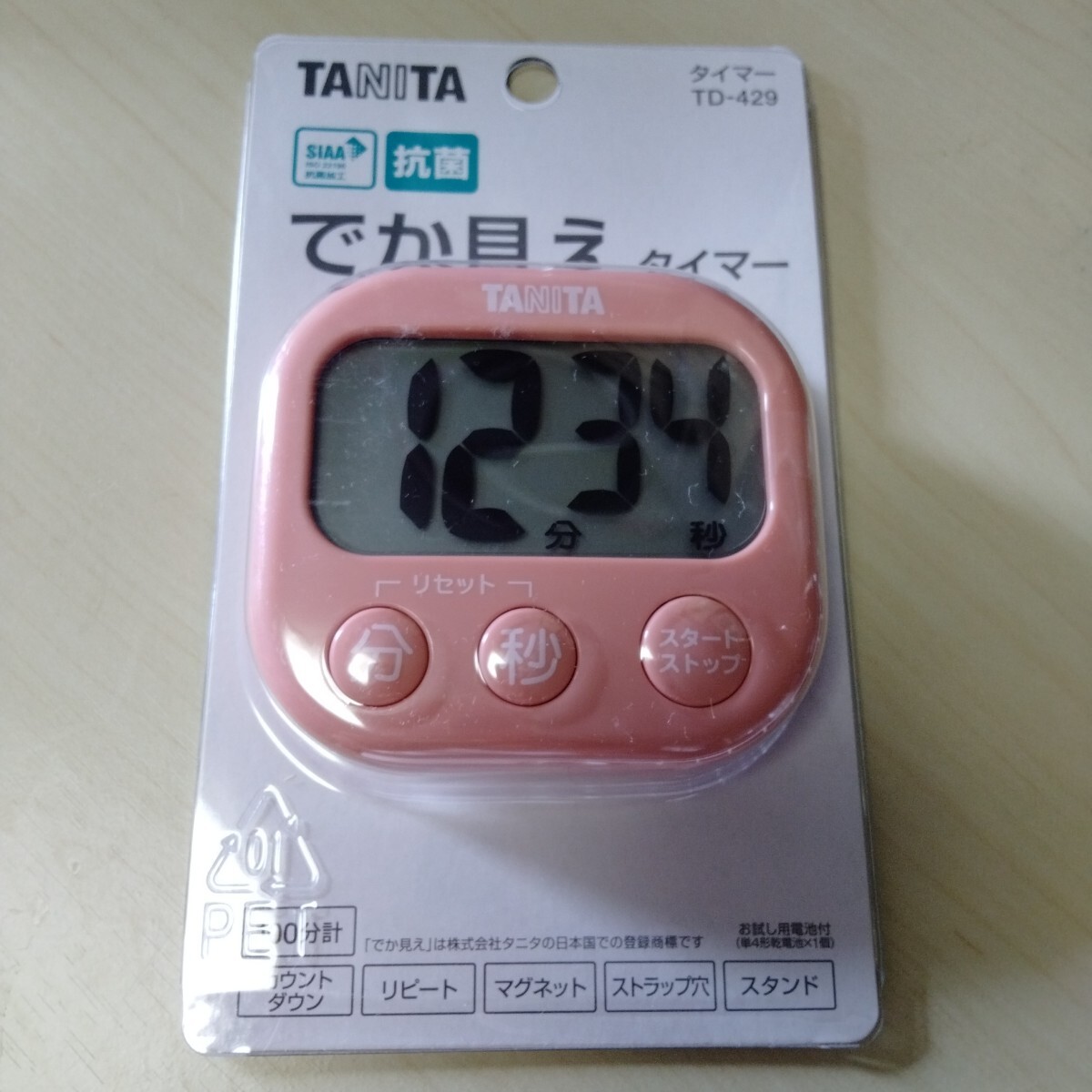 ◇TANITA タニタ 抗菌でか見えタイマー TD-429PK 99分59秒計 コーラルピンク