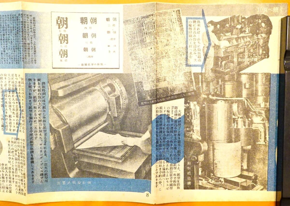 Product name: 東京朝日新聞 昭和23年発行 朝日新聞のできるまで 1枚 非売品  検:新聞製作体制組織図 ニュース記事編集校正 活版工場 輪転機 印刷能力