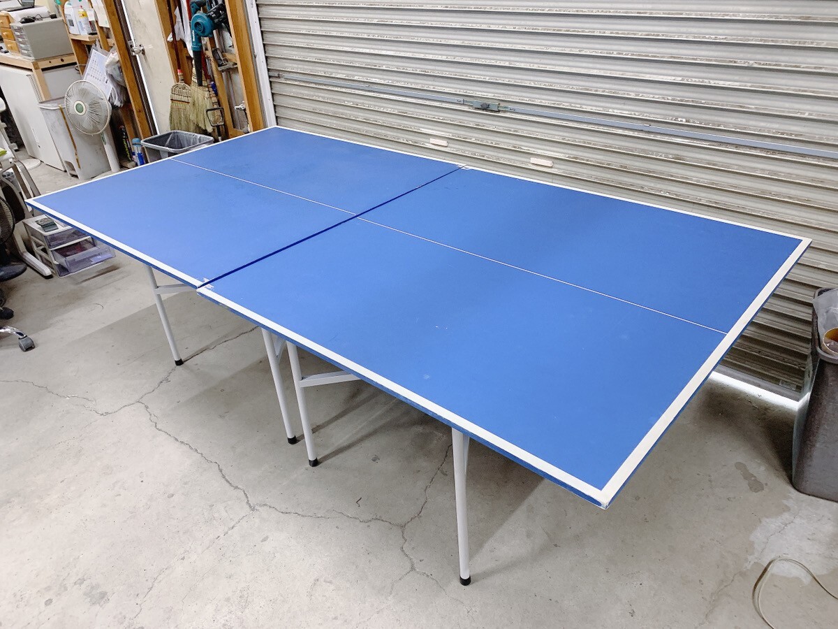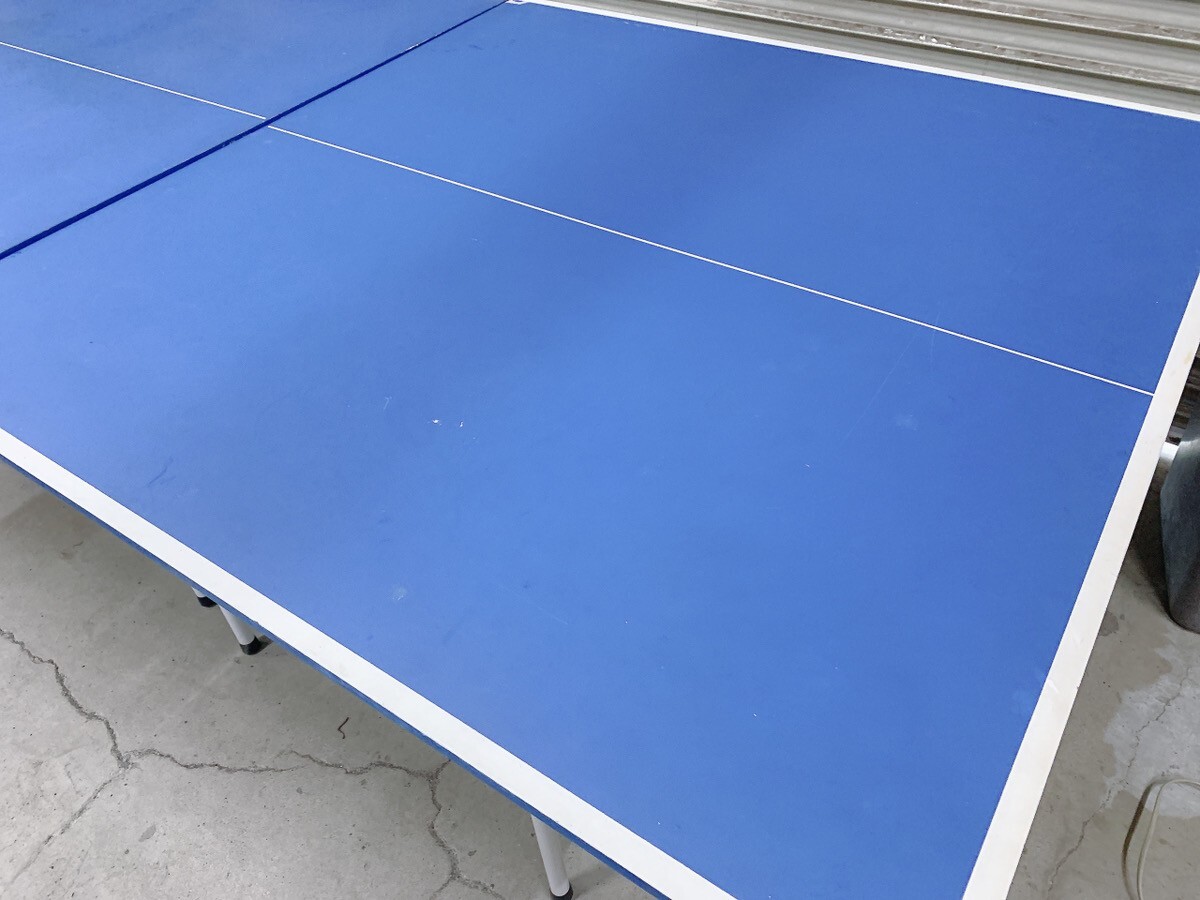 卓球台の表面に擦れや色あせ、使用感が感じられます