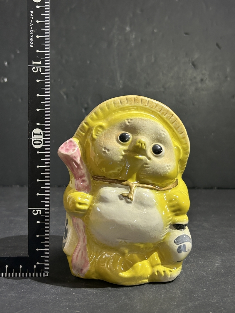 ● コレクター必見 陶器製 たぬき 狸 黄色 イエロー 貯金箱 縁起物 オブジェ 飾り インテリア 雑貨 コレクション Nr999