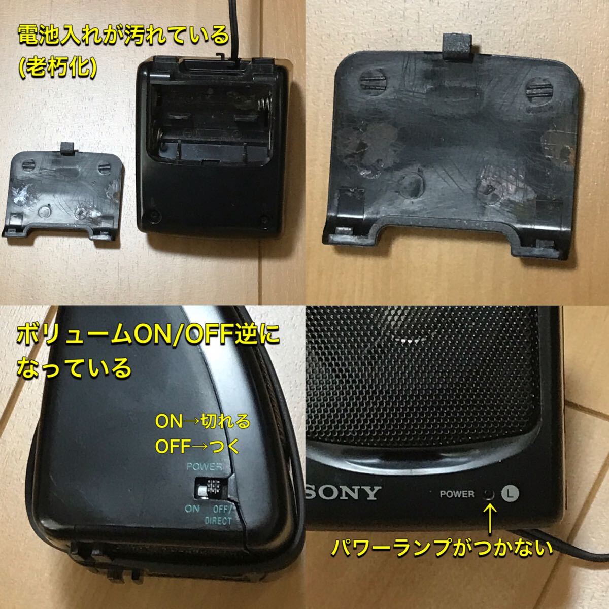 長期保存によりスピーカー部分に問題がありますが(10枚目画像参照)、問題なく動作します。