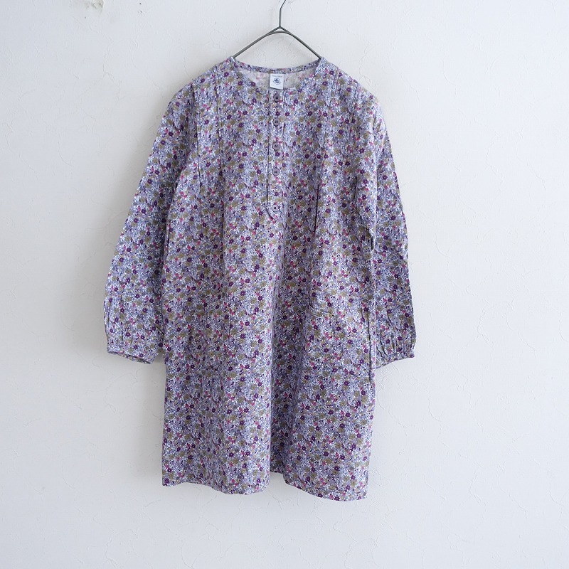 Product name: 【キッズ】プチバトー PETIT BATEAU *コットン 花柄 ワンピ―ス*綿パープル系長袖フラワー(84-2412-100)【61A52】