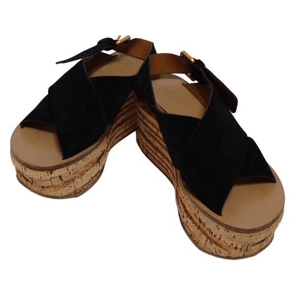 Product name: クロエ Chloe サンダル - 黒×ベージュ レディース ウェッジソール 靴