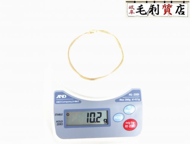 K18喜平のアンクレット、8面トリプル、10.2gです。造幣局検定マーク刻印が入っています。