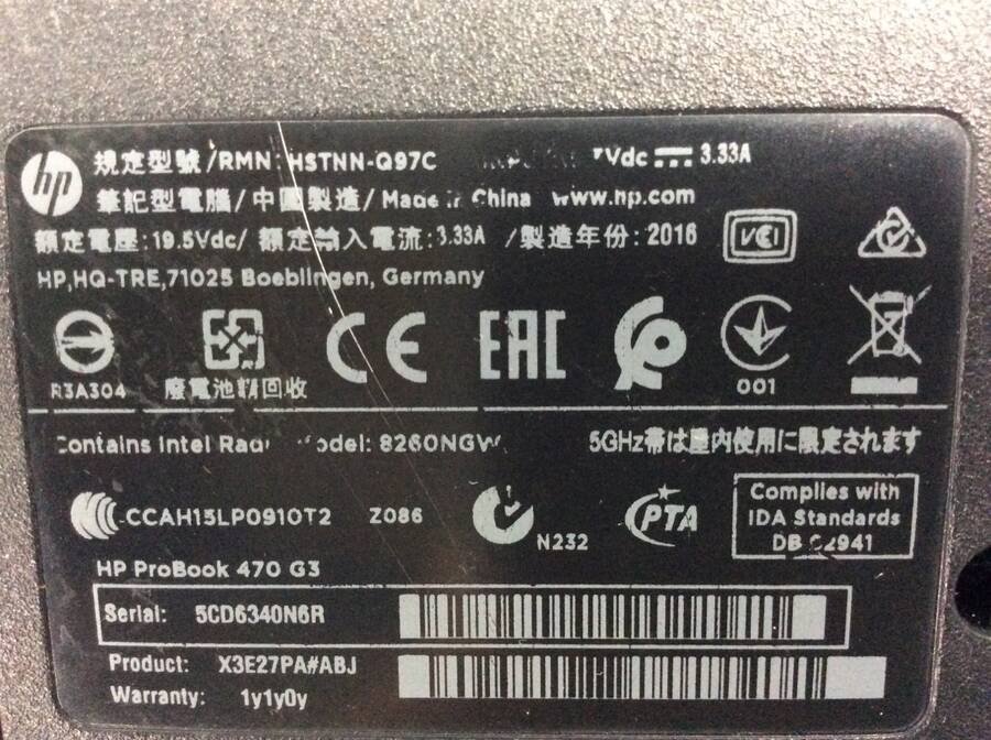 Product name: hp ProBook 470 G3 - Core i7 6500U 2.50GHz 8GB■ジャンク品