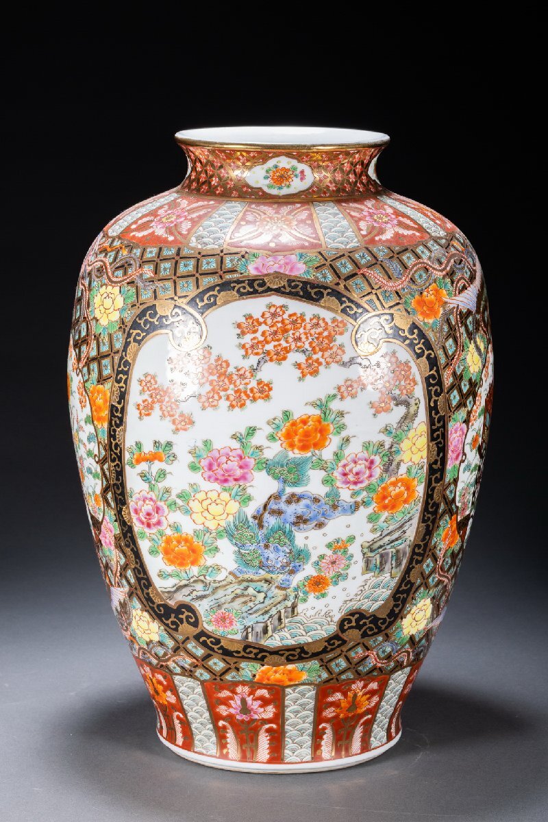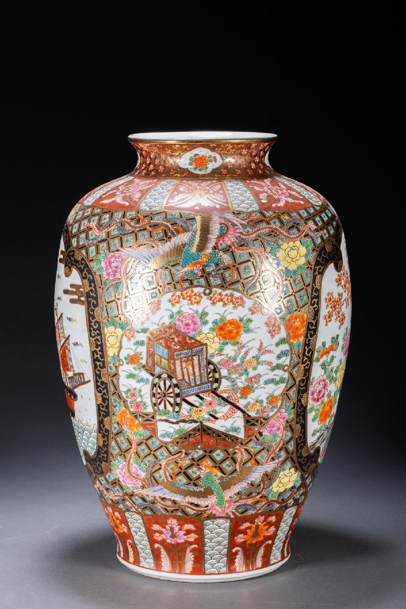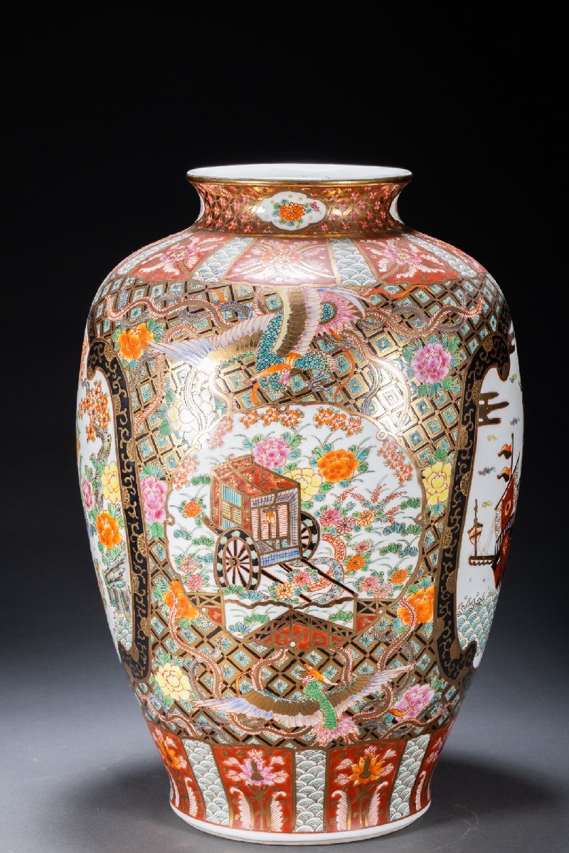Product name: 【珍品堂】1円から O03-21 薩摩焼 古伊万里 金蘭手 金彩 色絵 花瓶 大花瓶 高45cm 飾壺 花器 花入 骨董品 古美術 花生