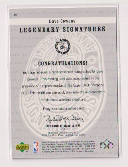 Product name: 1999-2000 UD Legendary Signatures Dave Cowens Autograph card