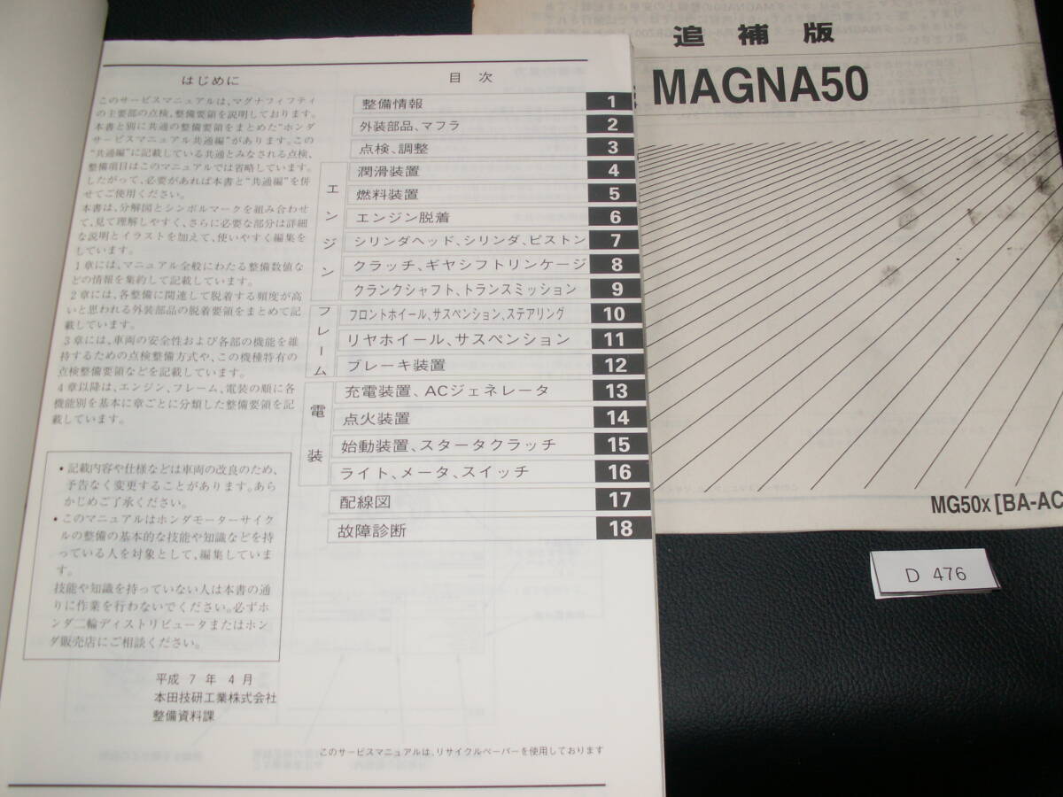 Product name: マグナ50 AC13 マグナフィフティMAGNA50 MG50S MG50X サービスマニュアル 追補版付き 整備書 当時物 D476 希少