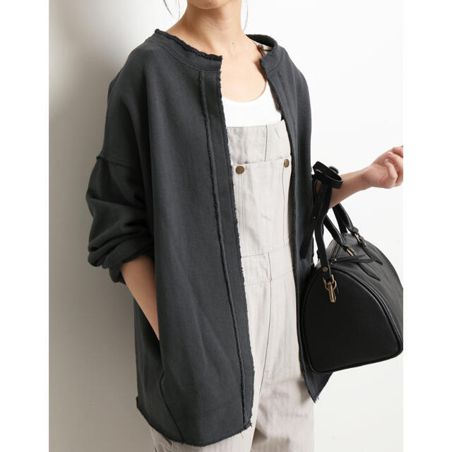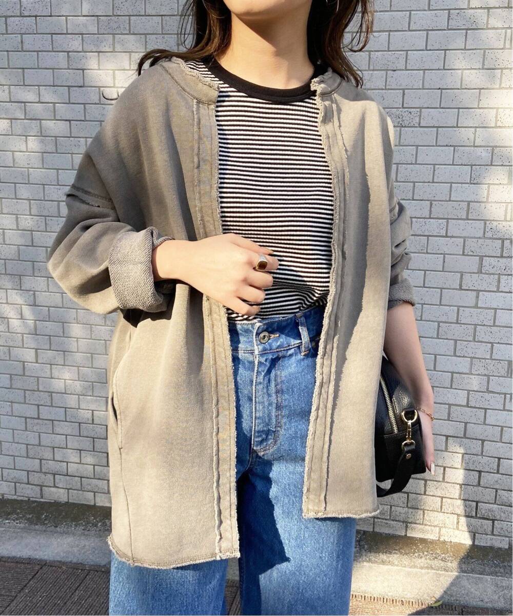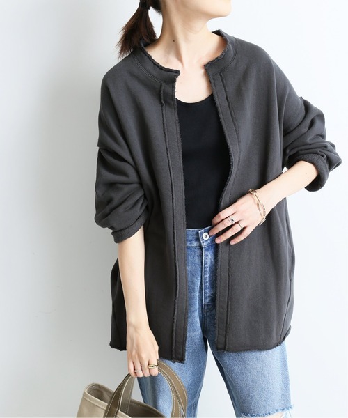 Product name: ∞ 2021 slobe iena イエナスローブ 裏毛 ノーカラー カーディガン ナチュラル チャコールグレー 羽織り スウェット ジャケット ∞