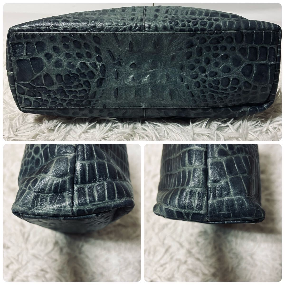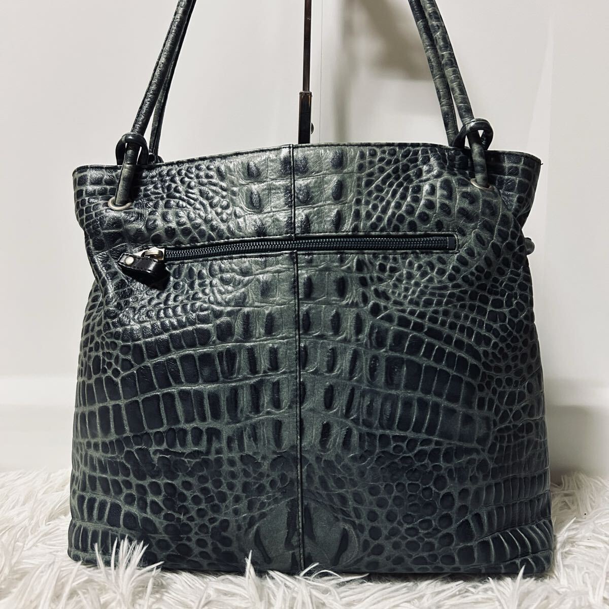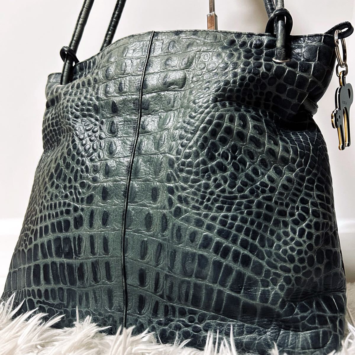 Product name: 極美品 FURLA フルラ 本革 レザー クロコダイル クロコ型押し トートバッグ グリーン系 肩掛け 3層 チャーム メンズ レディース 入手困難品