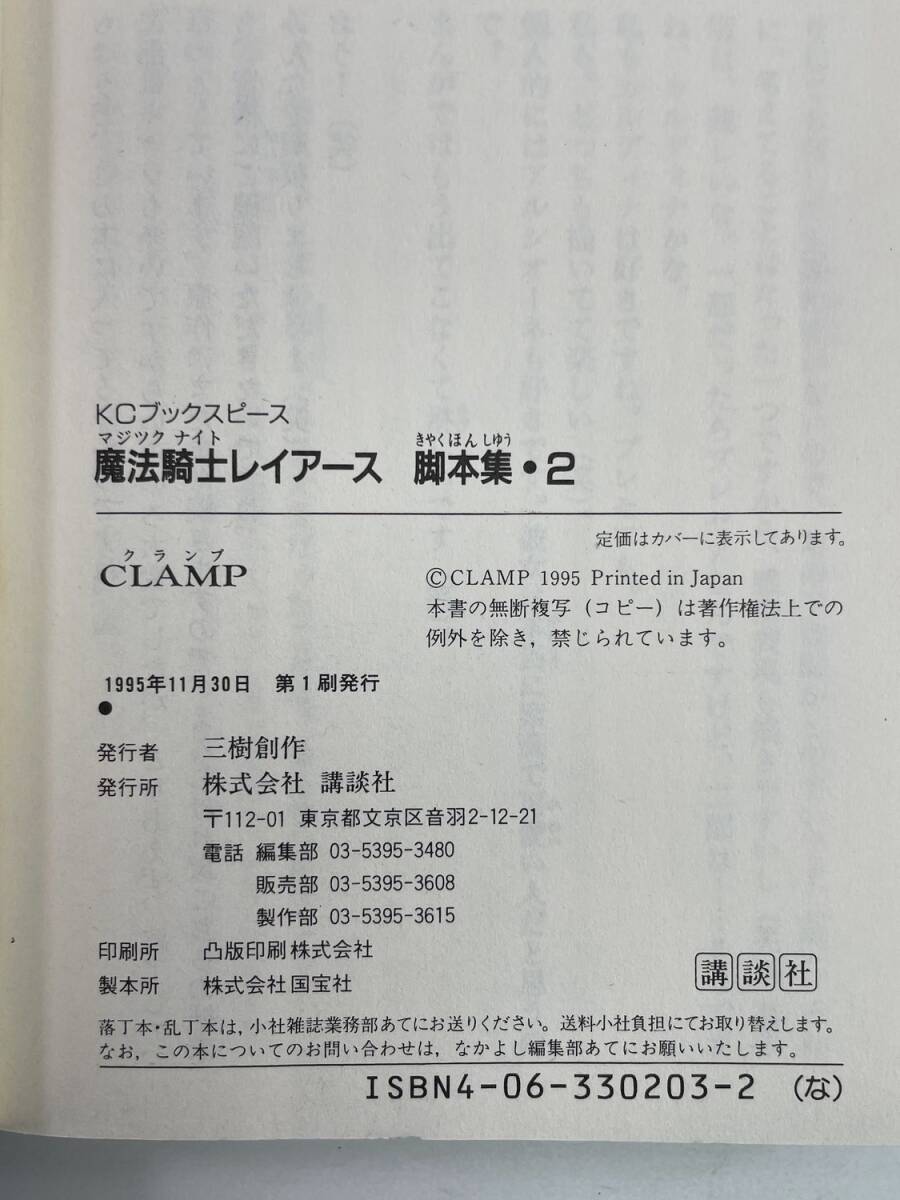 Product name: 魔法騎士レイアース脚本集2 KCブックスピース 平成7年 1995年発行【K184340】251016