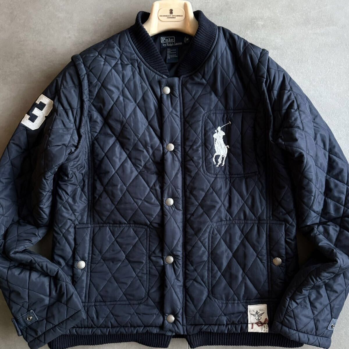 極美品/L相当●ポロラルフローレン BIGポニー刺繍 キルティングジャケット 中綿 ブルゾン アウター 紺 ネイビー 秋冬 Polo by Ralph Lauren