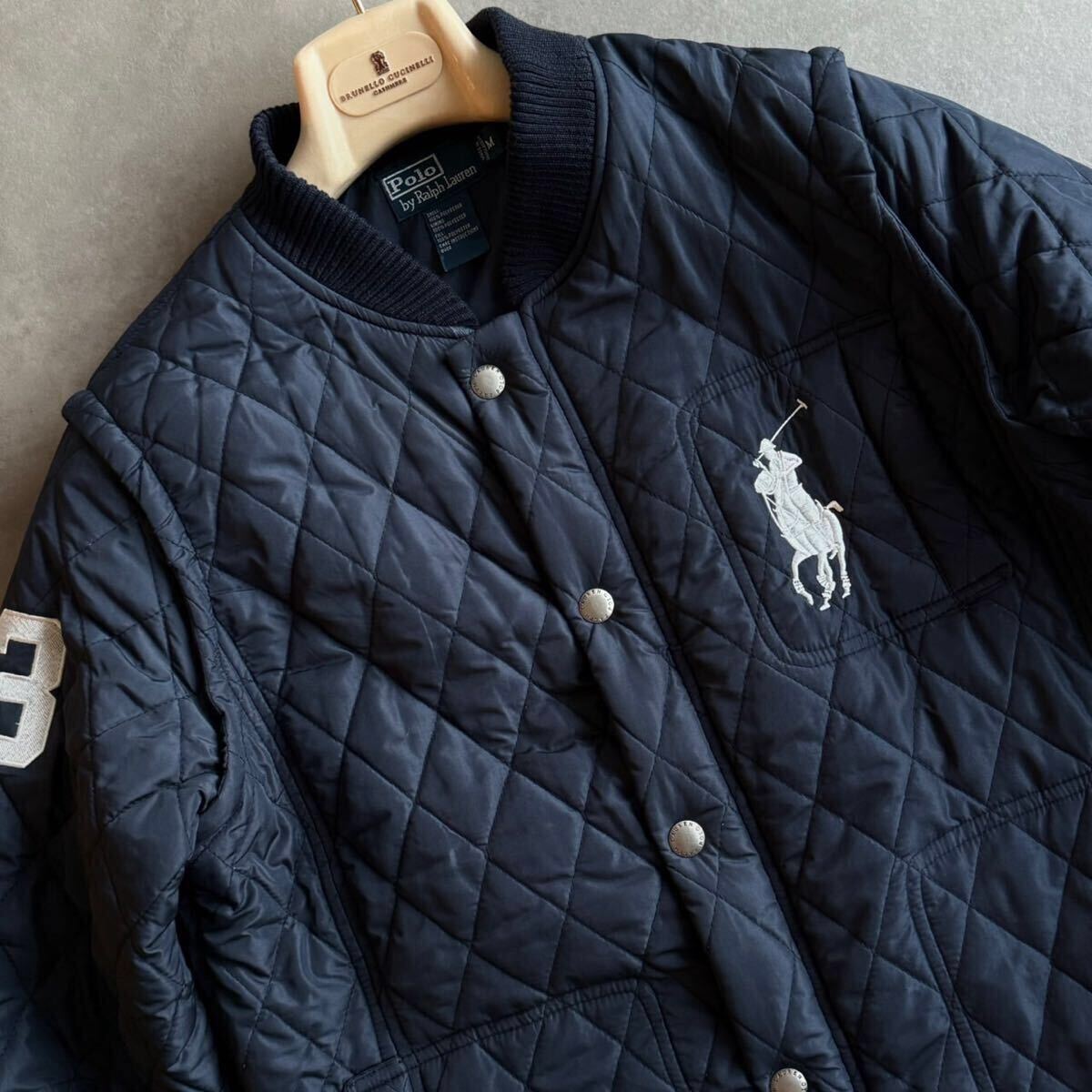 Product name: 極美品/L相当●ポロラルフローレン BIGポニー刺繍 キルティングジャケット 中綿 ブルゾン アウター 紺 ネイビー 秋冬 Polo by Ralph Lauren