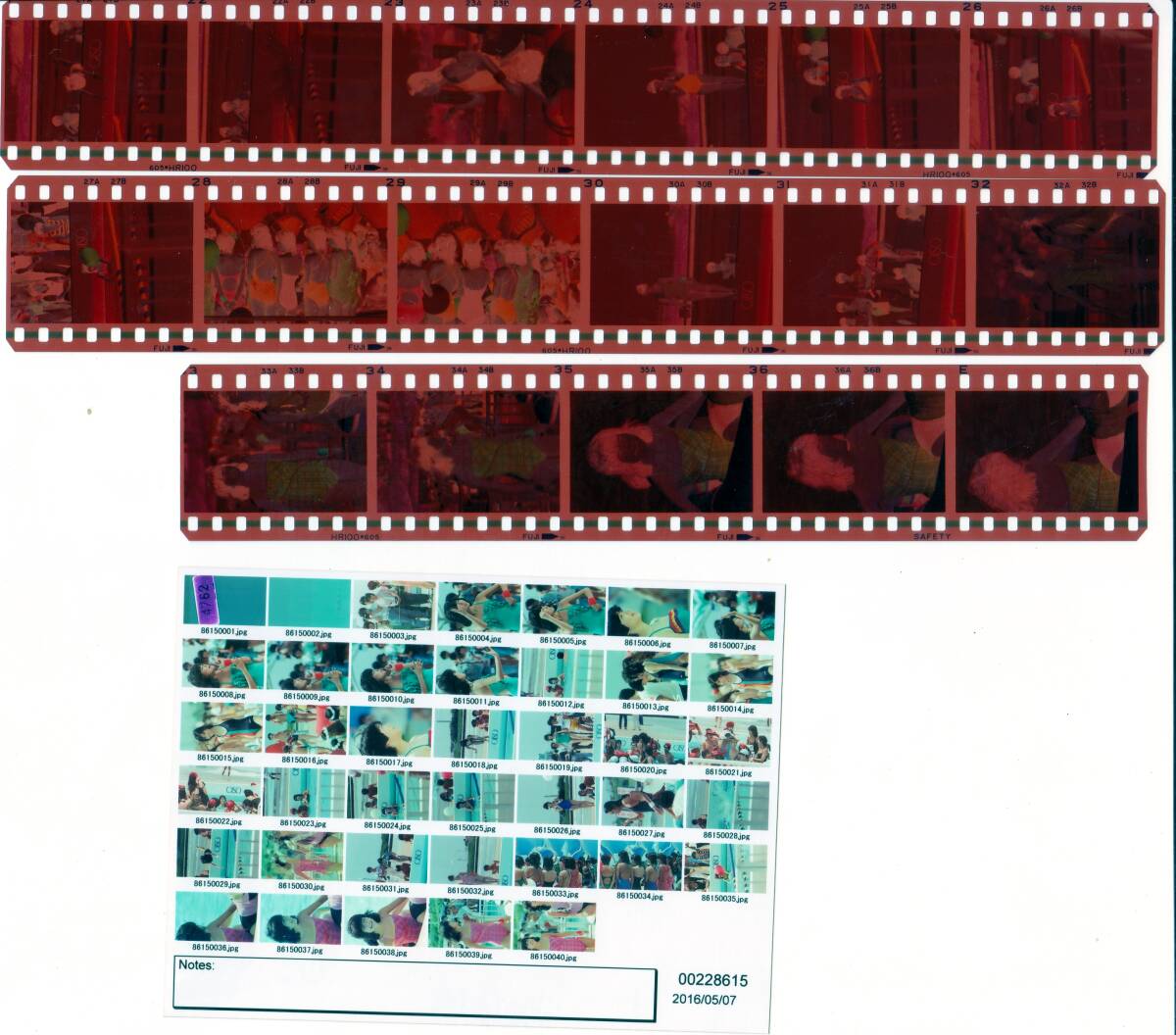 画像の1枚目と2枚目がお渡しするネガです。3枚目以降の画像はネガをスキャンしたものをプリントして複数枚ずつまとめて撮影したものです。当方の技術がつたないため色合いにばらつきがあります。