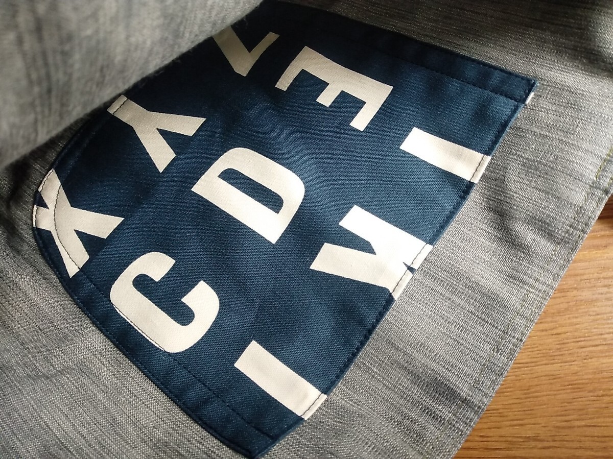 *英字柄の生地にアイロンで消えないラインが縦にうっすらあります。写真をご確認ください。