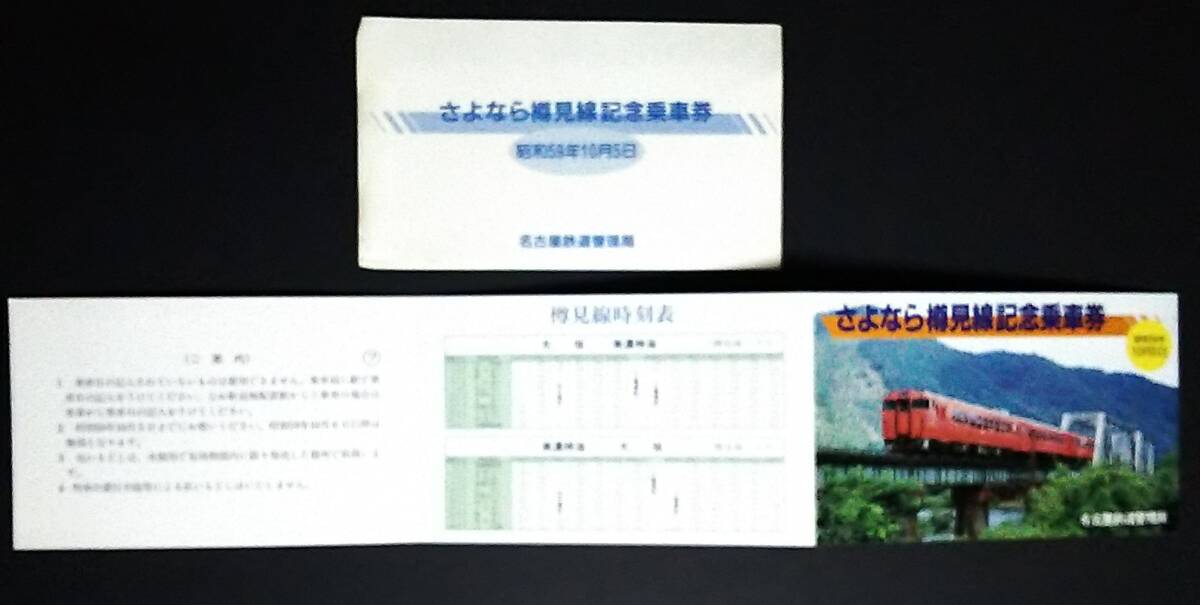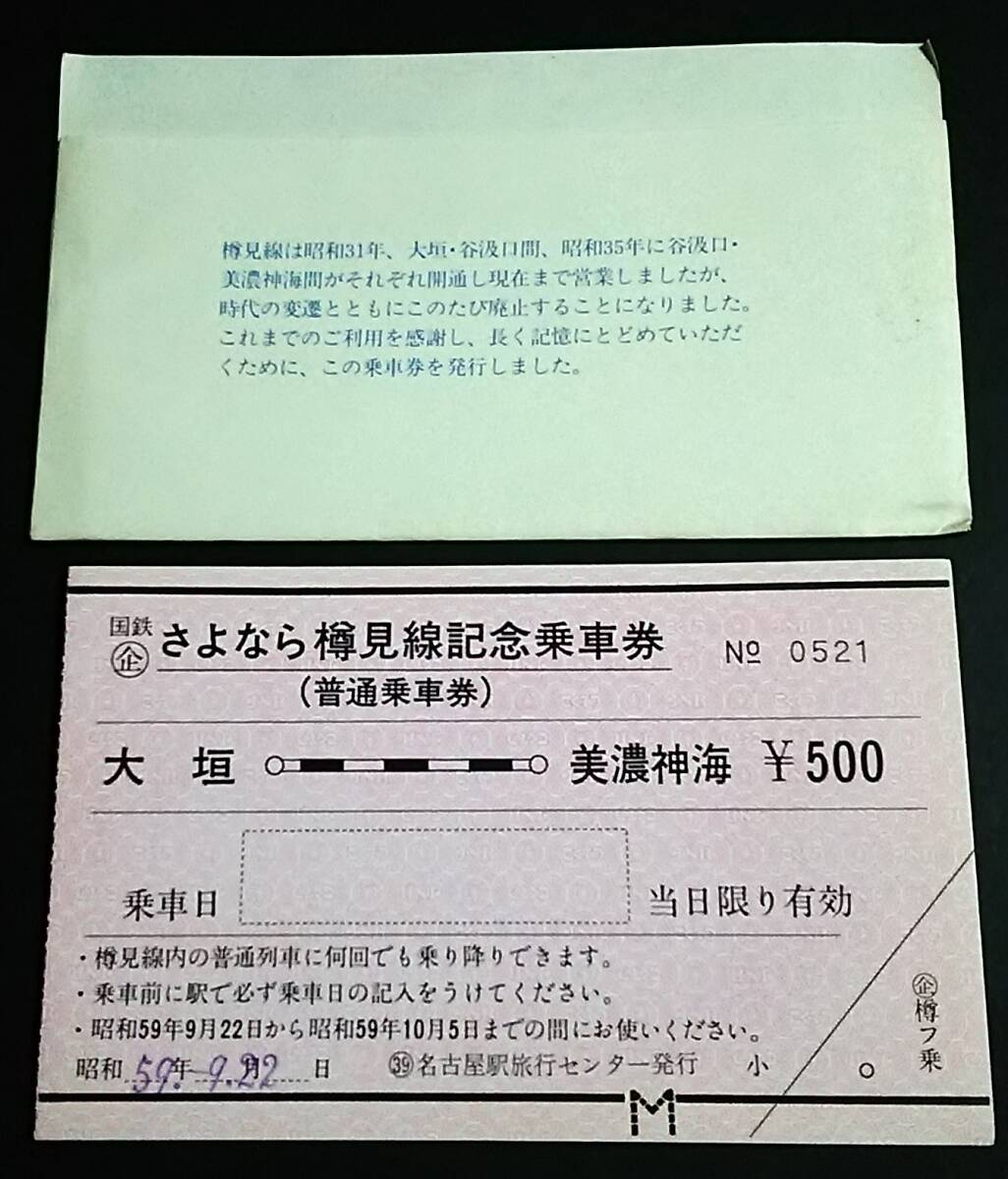 【記念きっぷ(フリー乗車券)】 『さよなら樽見線記念/昭和59年10月5日』大垣⇔美濃神海 S59.9.22 名古屋鉄道管理局
