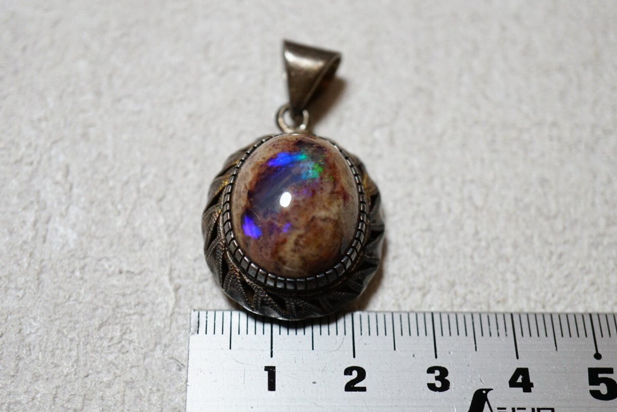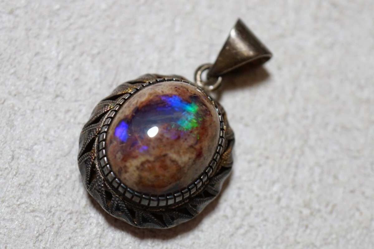 1247 天然カンテラオパール ペンダント ネックレス ヴィンテージ アクセサリー SILVER 925刻印 天然石 宝石 カラーストーン 訳あり 汚れ