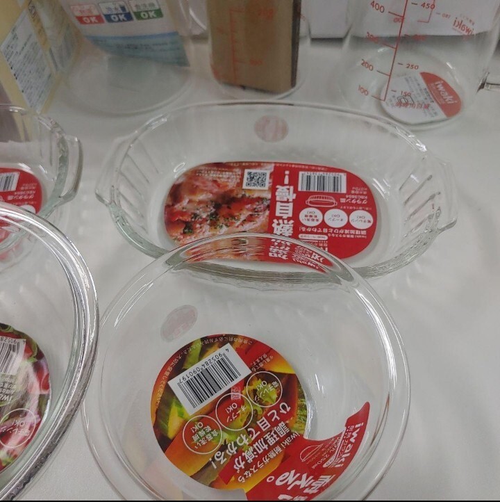 ・メジャーカップ(200、500ml)、ボウル(250、500ml)、グラタン皿(370ml)×2、レンジで作るフルーツ