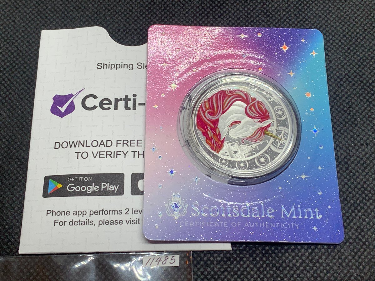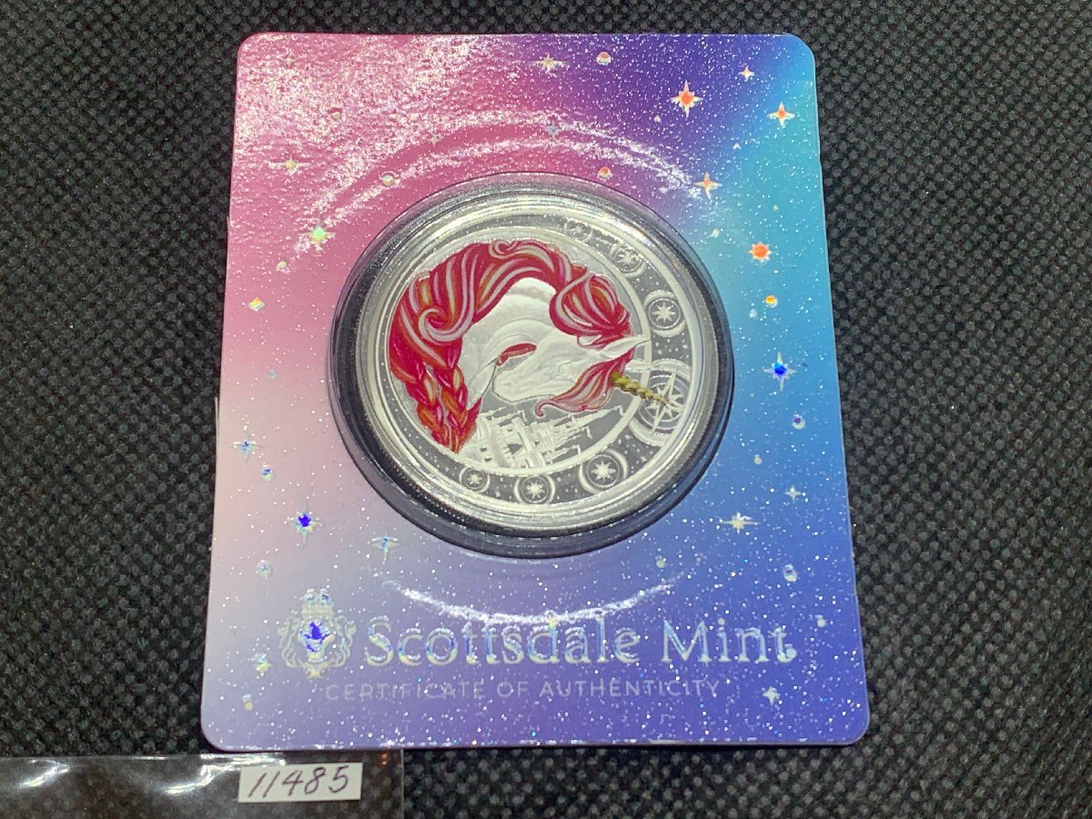31.1 グラム [保証書・カプセル付き] 2023年 (新品) ガーナ「ユニコーン・ジュビリー」純銀 1オンス カラー 銀貨