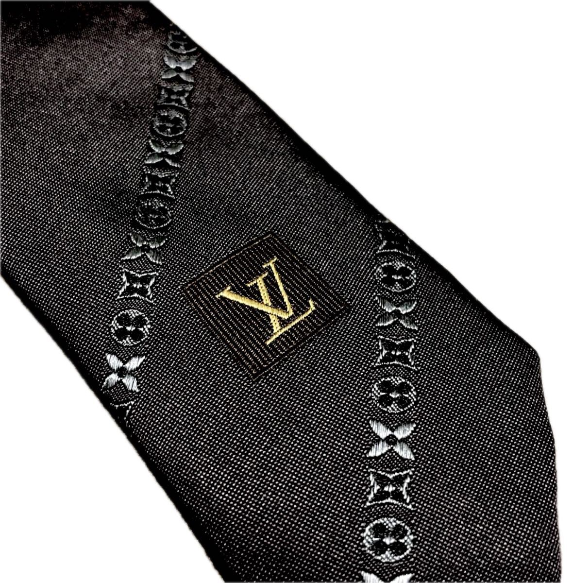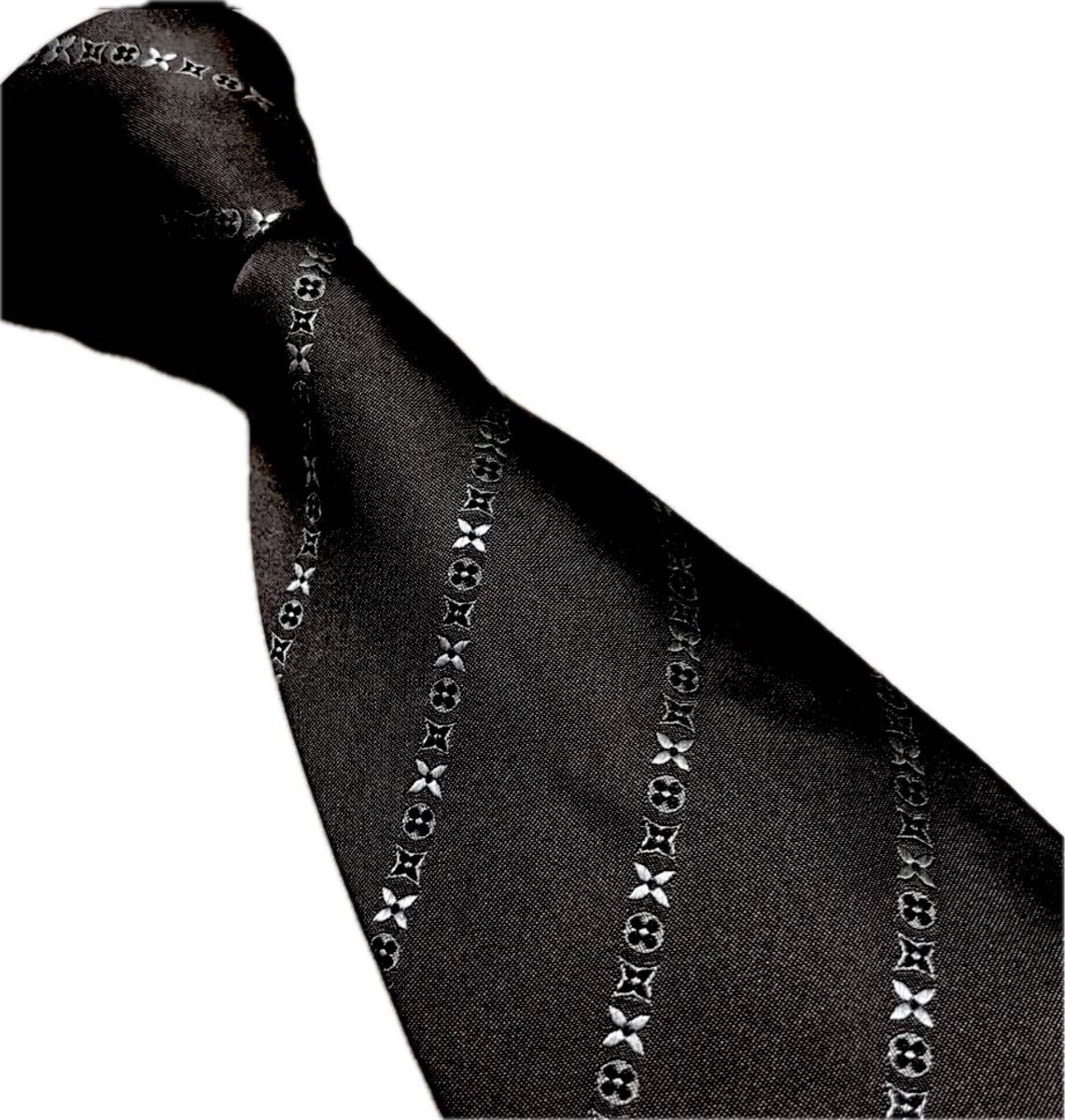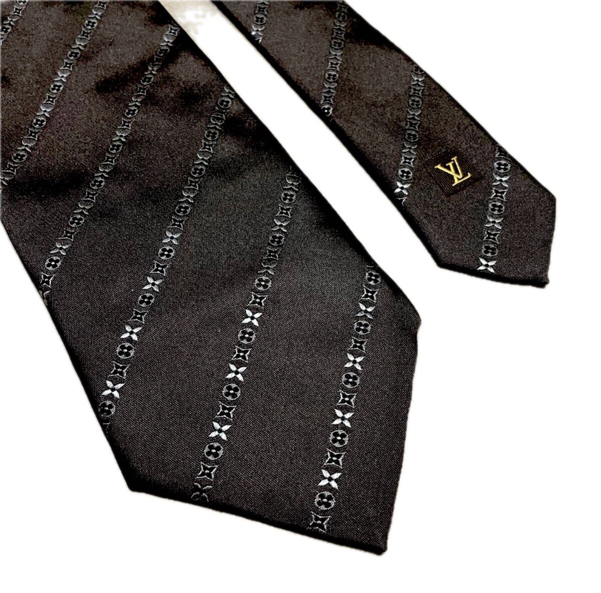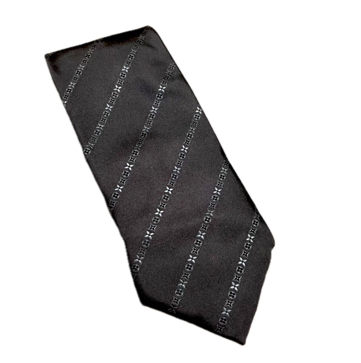 Product name: ★極美品LOUISVUITTON ルイ・ヴィトンモノグラム ストライプ シルク100 ネクタイ イタリア製 ダークグレイ 総柄 黒 MEN