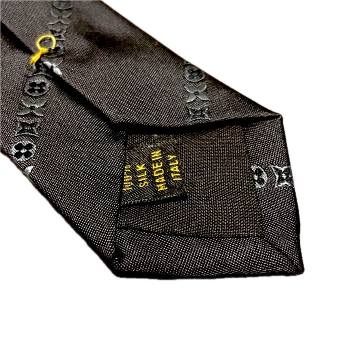 ★極美品LOUISVUITTON ルイ・ヴィトンモノグラム ストライプ シルク100 ネクタイ イタリア製 ダークグレイ 総柄 黒 MEN