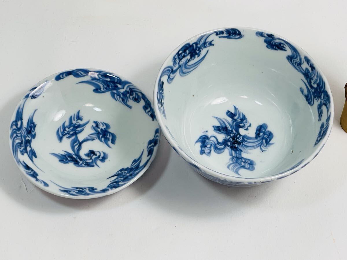 【B229】古染付 雲紋 蓋碗 茶盞 細密細絵 蓋碗 お碗 茶碗 茶盞 小鉢 茶器 茶道具 賞物 置物 時代物 中国古美術