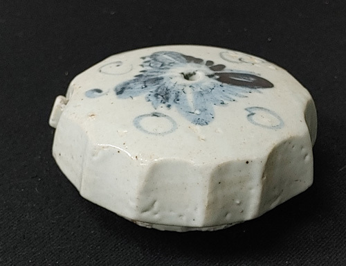 Product name: 李朝期 白磁 染付け 天面花文 力強い面取り切り 柔らかな白磁色 花形12面取り 大型水滴 ① 検 朝鮮陶磁酒器初期伊万里唐津志野