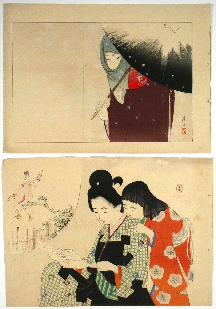 Product name: 242 【8枚まとめて】富岡永洗 袈裟御前 他 水野年方 梶田半古◆美人絵◆口絵◆雪◆傘◆版画◆浮世絵◆真作