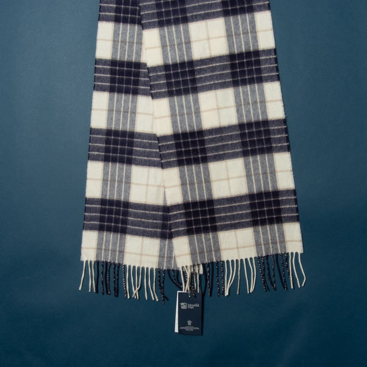 Product name: 【1円スタート】タグ付き 未使用品 JOHNSTONS OF ELGIN ジョンストンズオブエルガン カシミヤ100% チェック柄マフラー 定番 白系 英国製