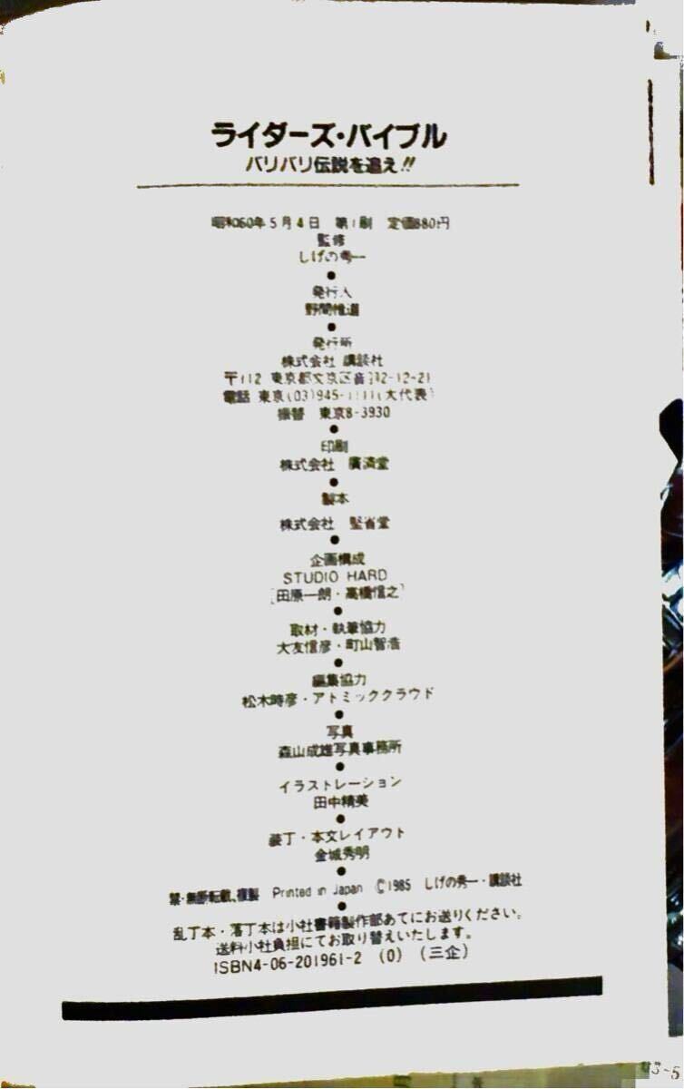 Product name: ライダーズ・バイブル バリバリ伝説を追え!! しげの秀一 講談社