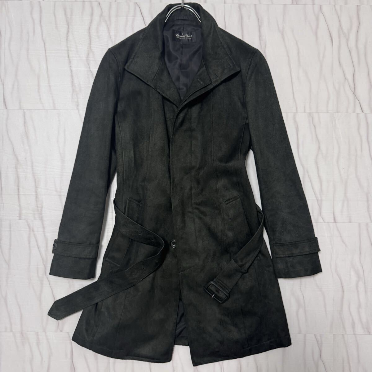 TORNADO MART トルネードマート マイクロスウェード ベルテッドコート ロング丈 スタンド メンズ 起毛 ベロア調 ベルト付 深緑 秋冬