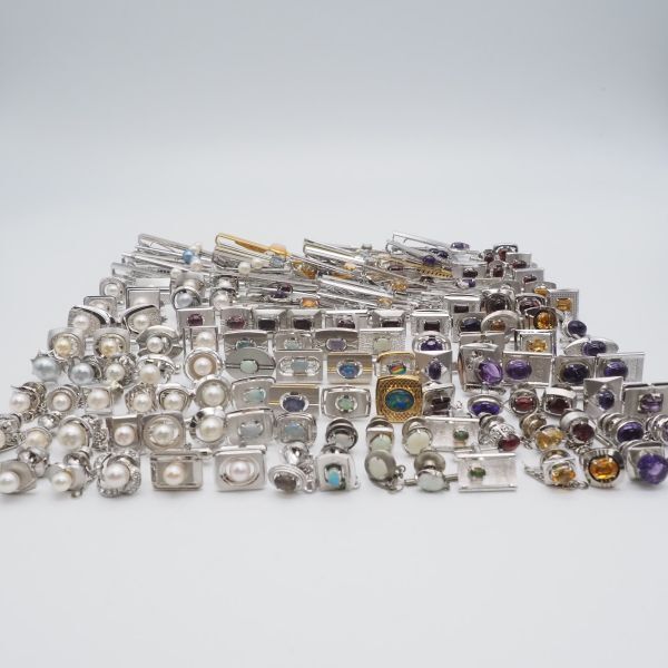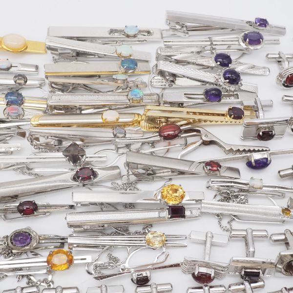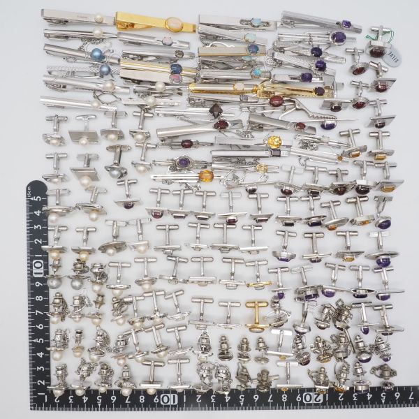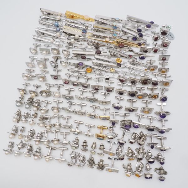 (KG1003) 1円 ネクタイピン カフスボタン アメジスト 真珠 パール オパール ガーネット 等 メンズアクセサリー 大量セット まとめて