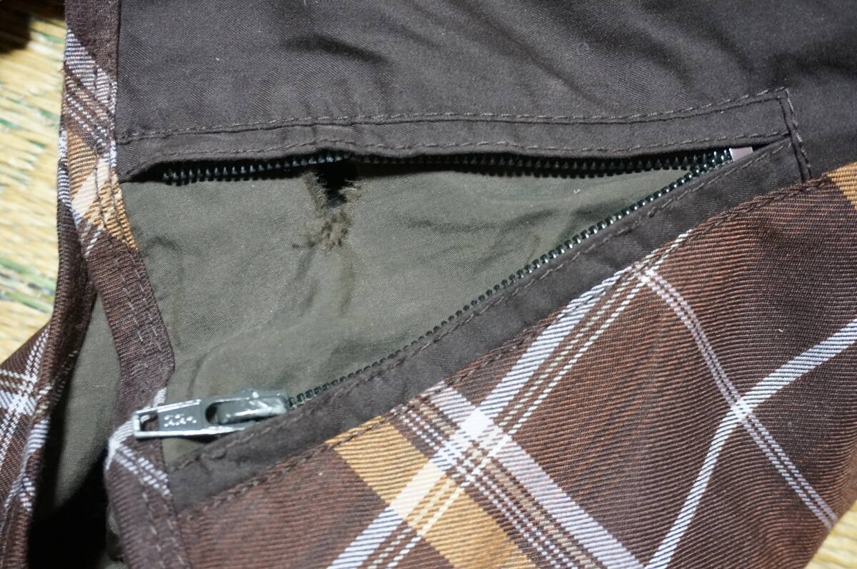 状態は少し使用感あります。裾の内側の素材破れ、ジップ破損あります。年式・使用回数は不明です。