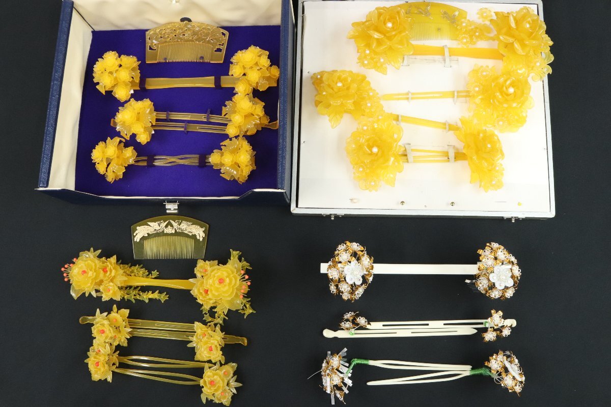 Product name: 豪華 花嫁 かんざし クシ 笄 まとめて 4セット 鼈甲調 金彩 簪 櫛 舞踊 和装小物 【彩irodori】