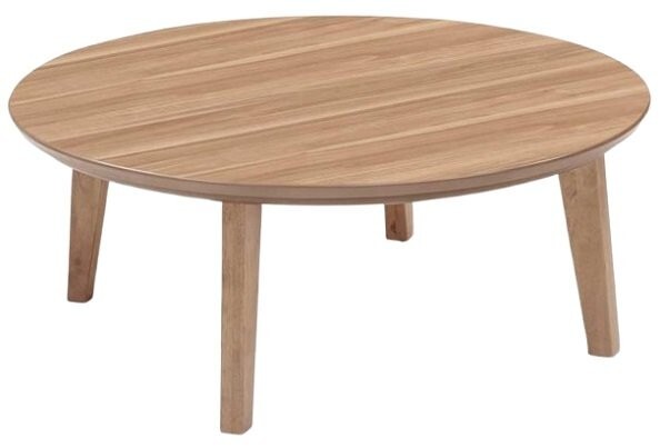 90cmの円形で1人用としても広く使え、2 人~3人用のリビングテーブルにすることもできます / まるで本物の天然木のような自然な風合いがあります / こたつテーブルだけではなくインテリアとしてもおすすめです / 天板止めビスが付属しているため、布団を掛けずに使用するときは天板と二重天板を固定することができ、天板ずれを防止することができます