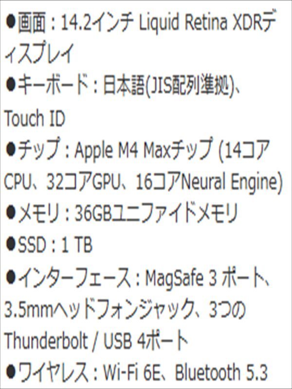 Product name: 【b04】未使用 未開封 アップル Apple 14インチMacBookPro 2024 M4Max 14コア 32コア 36GB 1TB スペースブラック MX2K3J/A ノートパソコン