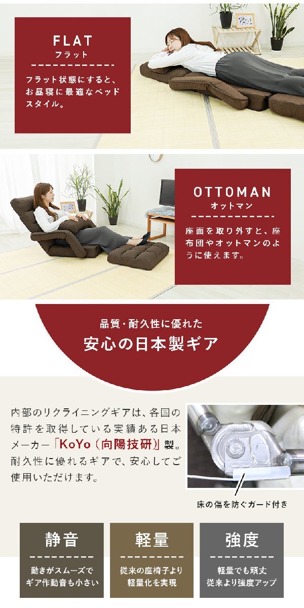Product name: 【数量限定セール】座椅子 リクライニング 肘掛付き ハイバック ソファ おしゃれ コンパクト フロアソファ 日本製ギア グレー