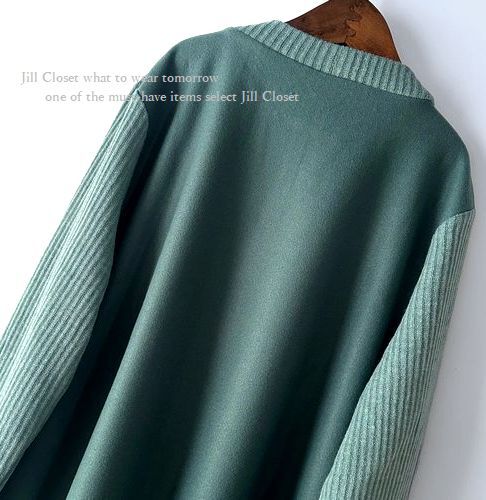 Product name: 新品【送料185円】伸縮◎異素材切り替えデザイン*リブニットソー×ウールライク素材*ポケット付き*プルオーバーチュニック7717.MTGR
