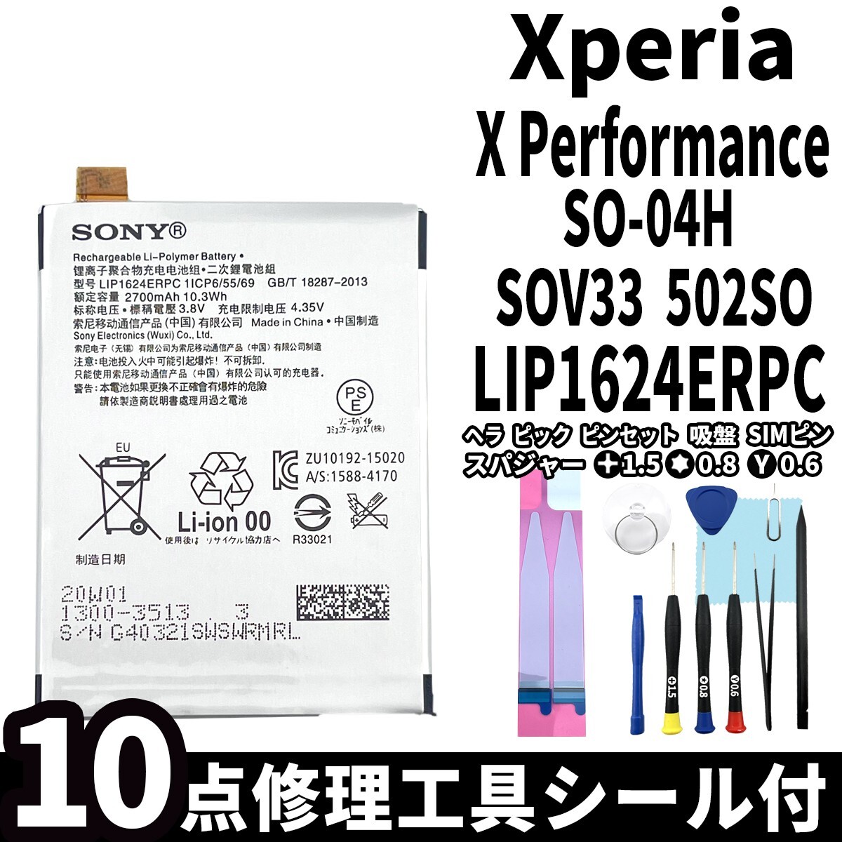 純正同等新品!即日発送!Xperia X Performance バッテリー LIP1624ERPC SO-04H SOV33 502SO 電池パック交換 内蔵battery 両面テープ 工具付